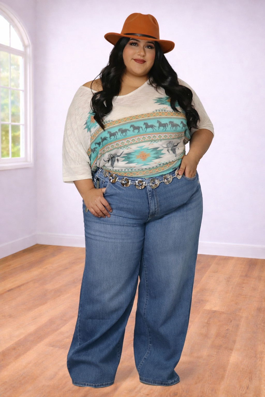 Plus Size Southwestern Horse Graphic Blouse | Divas Fashion Boutique